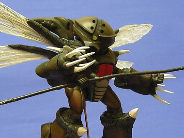 関節がウネウネで羽根がついてればオーラバトラーに見えるんじゃね? というお手軽発想だったのだが、製作には思った以上の労力と時間を使った記憶がある。